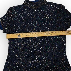 Stunning Adrianna Papell blouse. Covered in multicolor sequins. Short sleeves with a high neckline. Perfect for a night out.
