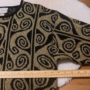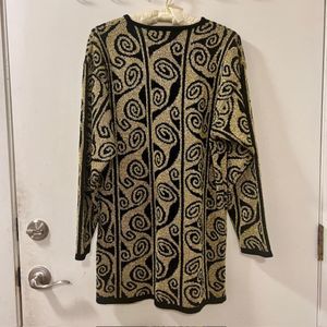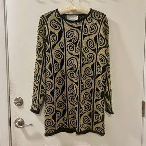 VTG Adrienne Vittadini Gold Black Glitters Wool Blend Tunic Sweater Size LG/XL