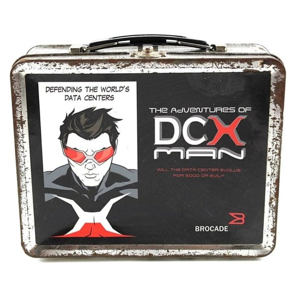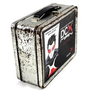 Rare The Adventures of DCX Man Metal Lunchbox Brocade 7 5/8" wide x 3 1/8" deep x 6" high.