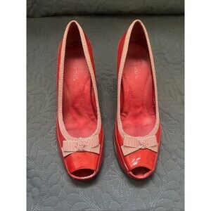 VTG Aerosoles Benert Red Patent Leather & Stripe Heel Pin-Up Retro Style SZ 8.5M