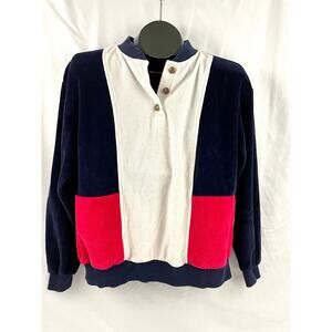 VTG Aileen Medium Blue Red White Top Blouse Classic USA Colorblock