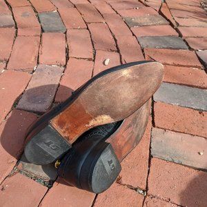 VTG Alan McAfee Mens Wingtip Shoes 11 C Black Leather Brogue England. Shoe trees NOT included.
