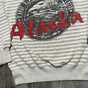 VTG Alaska The Final Frontier White/Grey Striped USA Juneau Travel Sweatshirt