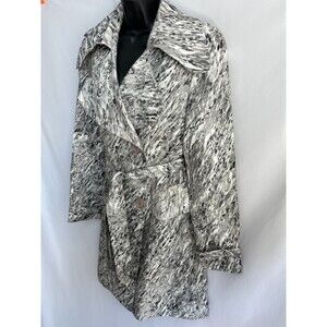 VTG Alberto Makali Floral Quilted Embroidered Trench Coat Jacket 10 Silver White