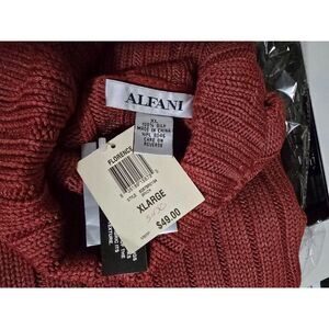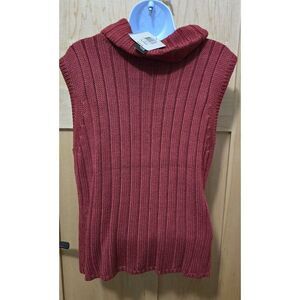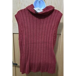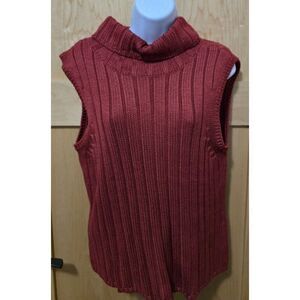 VTG Alfani Womens XL Sleeveless Red Ribbed Knit Turtleneck Sweater Top 100% Silk