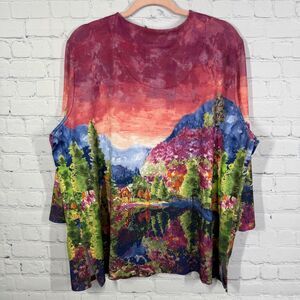 VTG Alfred Dunner Blouse Women Plus 1X Artsy Wacky Beaded Novelty stretch Top