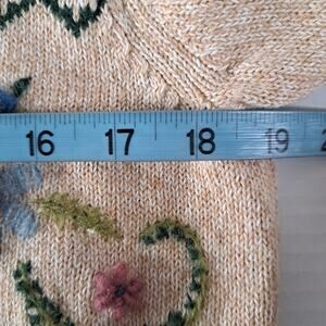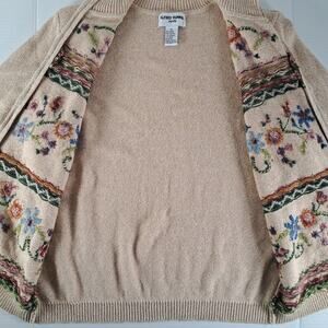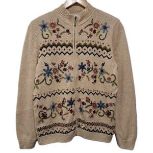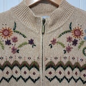 VTG Alfred Dunner Full Zip Sweater Womens PL Beige Knit Cardigan Embroidered 90s
