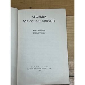 Step back in time with this vintage "Algebra for College Students" textbook by Ross Middlemiss, published in 1953!
