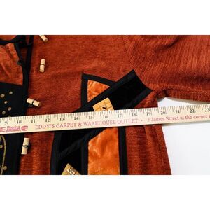 Vibrant chenille cardigan with geometric patterns and wooden button closures. Features stylish pockets and unique back design. Wooden button closures Geometric patterns Stylish pockets Unique back design Chenille material Dry clean only Made in U.S.A. Non-smoking home. Check out our other listings to bundle items and save on shipping charges.
