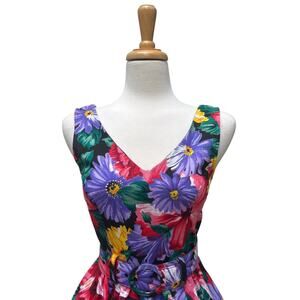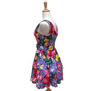 VTG All That Jazz Floral Mini Dress Sz SM Multicolored Bold Belted Fit and Flare