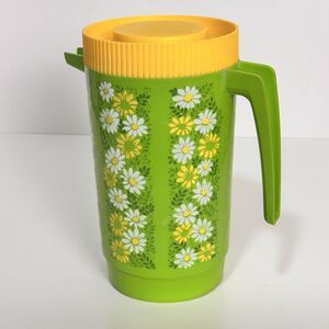 VTG Alladinware Retro 2 1/4 Qt. Plastic Drink Pitcher Green Daisy Floral
