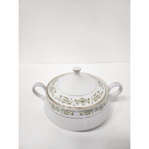 VTG Allegro Porcelain White Green Floral Vegetable Serving Dish Gold Trim Lidded