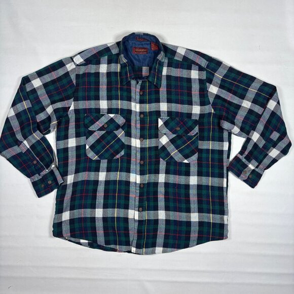VTG Allen Wickfield Outdoor Outfitters Blue/Green Plaid Button Shirt Mens XL