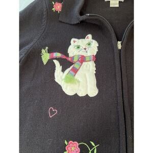 VTG Allison Daley Women SM Black Pink Zip Up Sweater Crazy Cat Lady