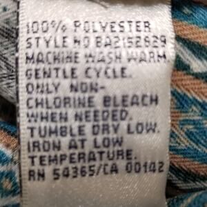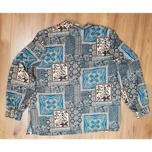 Allison Daley Women's Career Casual Button Up Blouse long Sleeves Size 16; Material - 100% Polyester; Care - Machine Wash Cold, Gentle, Tumble Dry Low; Made in Indonesia; Beautiful Multicolor, Pointed Color, Shoulder Pads, Button Down, 2 Button Cuff Long Sleeve with Rouching at cuff, 3 in Slits at Side Seam Hems, Paisley, Floral Pattern,