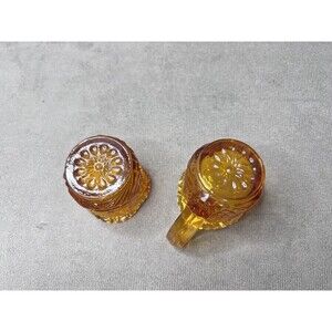 Vintage Amber Miniature Glass Pitcher toothpick holder Creamer Lot