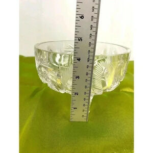 VTG American Brilliant Clear Cut Glass 3 Footed Bowl Fan & Hobstar Pattern