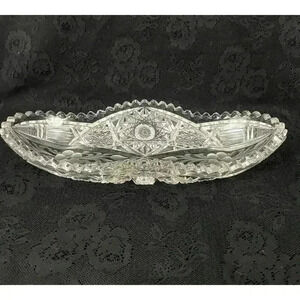 VTG American Brilliant Clear Cut Glass Oblong Relish Tray Celery Bowl 11" HEAVY