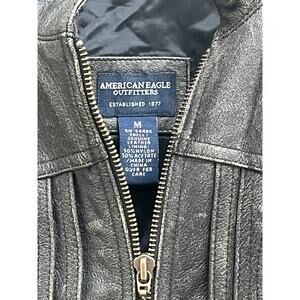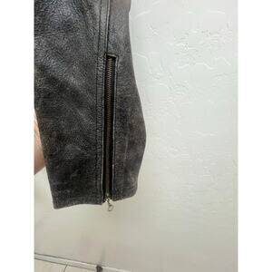 VTG American Eagle Distressed Jacket Brown Moto Cafe Genuine Leather Biker Y2K