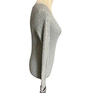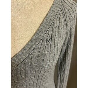 VTG American Eagle Outfitters Womens Cable Knit V Neck Gray Sweater Y2K Preppy Pullover Fitted Long Sleeves