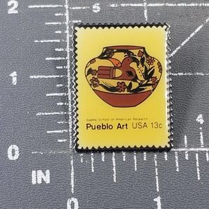 VTG American Folk Art Pueblo Pottery Acoma Pot USPS USA 13 Cent Stamp Enamel Pin