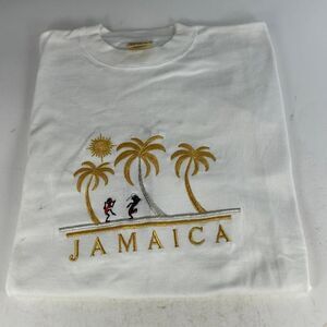 VTG American Tee's Jamaica Embroidered T-SHIRT Size XL White Short Sleeve