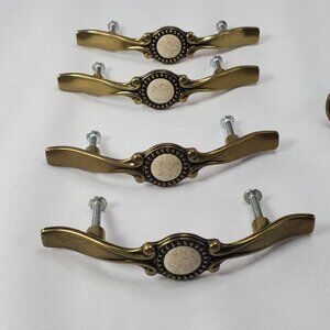 VTG Amerock Drawer Handle Pulls Speckled Ceramic Antique Brass 4 Pulls 1 knob