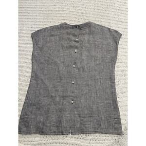 VTG Amherst Linen Houndstooth Blouse Womens Medium Button Down Back Lagenlook
