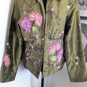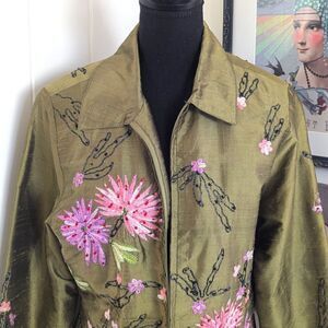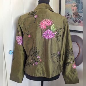 VTG Anage Green Silk Floral Embroidered Beaded Jacket M Boho Fairy Whimsical