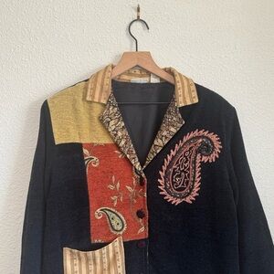 VTG Analogy 90's M Patchwork Button up Cardigan Embroidered Paisley Tapestry