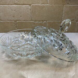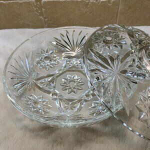 VTG Anchor Hocking Clear Cut Lidded Glass Dish