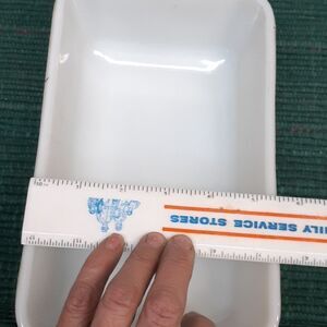 Anchor Hocking FireKing- vegetable Fruit #441 , VTG Anchor Hocking Fire King Vegetable Fruit Pattern 1 qt. Loaf/Casserole Dish. Add a touch of Mid-Century Modern flair to your kitchen with this vintage Anchor Hocking Fire King Vegetable Fruit pattern 1 qt. loaf/casserole dish. Made of durable and long-lasting milk glass, this rectangular dish comes in a glossy white finish and is adorned with an impressed backstamp. The dish is oven, microwave, and dishwasher safe, making it a convenient addition to your collection.