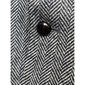 The VTG Anderson Little 2 Knot Button Suit Jacket Blazer in Herringbone Tweed Wool is a classic and stylish men's blazer suitable for various occasions such as travel, parties, casual or formal events, and business meetings. Made from high-quality wool fabric with a herringbone pattern, this vintage blazer features a two-button front closure and three-button sleeve detail. The timeless black color and Anderson Little brand add a touch of sophistication to this tailored piece, making it a versatile addition to any man's wardrobe.