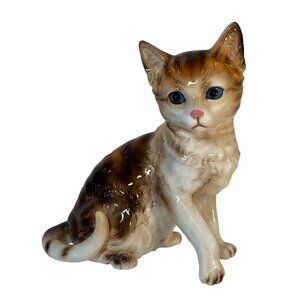 This charming vintage Andrea by Sadek glazed ceramic figurine features a brown tabby cat with striking blue eyes. Made in Japan, it exudes a classic appeal perfect for collectors and cat enthusiasts.