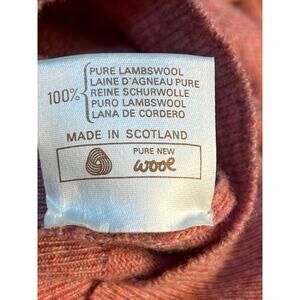 VTG Andrew Steward Sweater XS 36" Pink Lambswool Neck Tie Preppy Academia Made in Scotland. There are 3 smalls holes to the back right bottom of the sweater. around 1-2mm. Size tag is loosely tacked.
