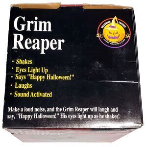 Condition: Good pre-owned vintage with original box. Box has some wear from storage and age. Tested - eyes glow, reaper shakes, but do not hear voice (may need better batteries for this, as everything else seems to be working as advertised). String for hanging seems strong, and long. x3 AA batteries not included. Very cool hanger for inside or porch (wouldn't try it in rainy weather outside). Please view pictures closely. Inquiries and offers always welcome.