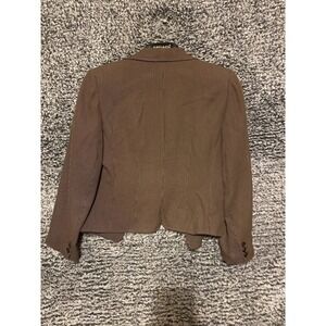 Crafted from a lightweight tweed fabric with a cotton outer shell and lined with acetate, this blazer provides both comfort and style. Its petite size (10P) and short jacket/coat length make it a staple for any wardrobe. The jacket also includes polyester insulation material for added warmth during chilly days. This designer 90s-style blazer jacket also boasts accent buttons and is pre-owned.armpit to armpit 19 lenght 22 inches