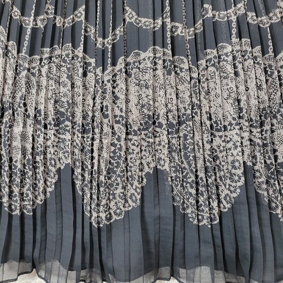 VTG Ann Taylor LOFT Faux Wrap Dress 2 Black Gray Pleated Velvet Trim Coquette