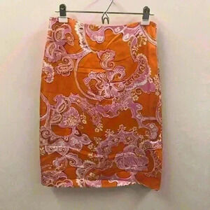 VTG Ann Taylor Orange Pink Paisley Print Skirt
