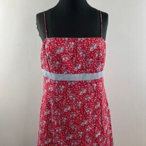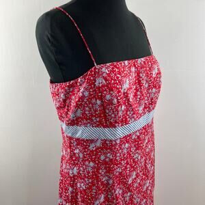 Ann Taylor Red Blue Cami Dress Cotton Floral Print Square Neck Back Tie Size 12