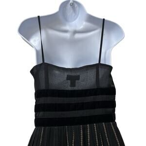 VTG Ann Taylor Velvet Trim Midi Dress Size 4 Black Y2K Fairy Grunge Whimsigoth