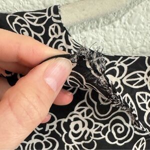 VTG Ann Taylor Womens Size 2 100% Silk Floral White Black Blouse Ruffle Preppy