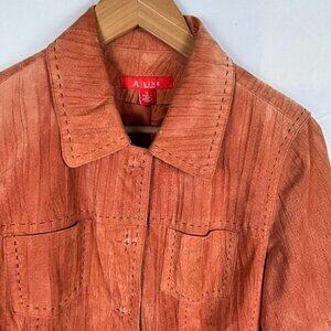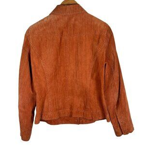 VTG Anne Klein A-Line Womens Suede Leather Jacket Size 12 Orange Brown Cropped