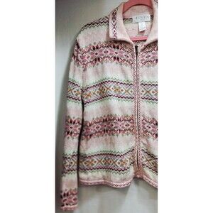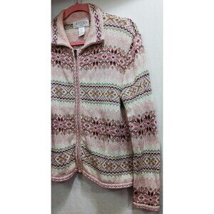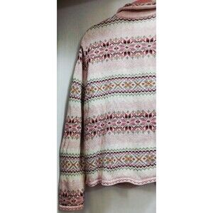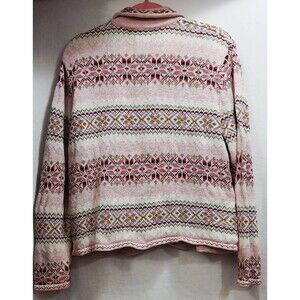 VTG Annex Petite PL Fair Isle Knit Cardigan Sweater Zip Front Pink Cottagecore