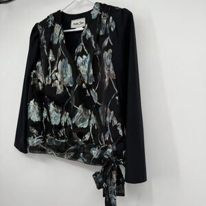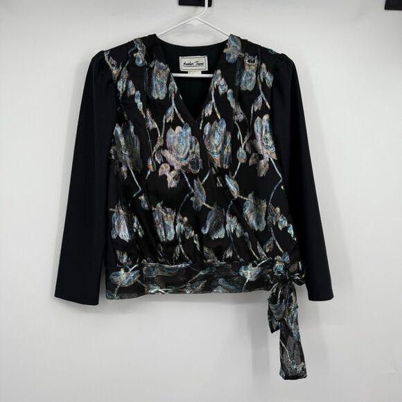VTG Another Thyme Black LS Blouse Metallic Floral Fairy Gothic USA Art To Wear