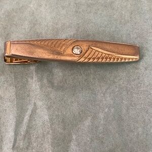 VTG Anson Cuff Links Tie Bar Goldtone Coloring Clear Center Stone Art Nouveau