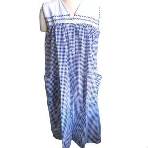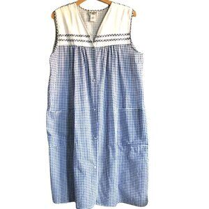 VTG Anthony Richards Blue White Check Cottagecore Sz 1X Shift MuuMuu Dress 207F