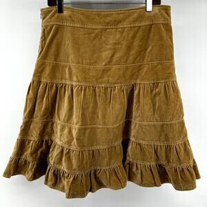 VTG Anthropologie Odille Mini Ruffle Skirt Zip Tiered 100% Cotton Yellow 10 34"