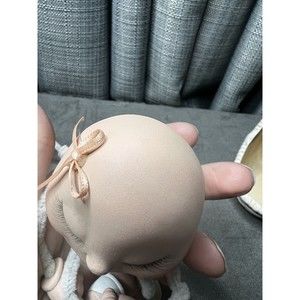 Listing is a preowned vintage items in great condition, Surprised happy egg girl, pipe cleaner arms and legs, laces on shoes, hair bow, some wear on top of head, hand painted face Sleepy egg girl, hand painted face, pipe cleaner arms and legs, one shoe with laces one shoe none, hair bow Ceramic basket with lace bows, marked on bottom Carla 1991, eggs sit nicely in basket