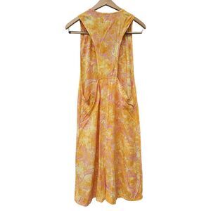 The VTG April Cornell Orange Pink Fish Midi Dress is a stylish and whimsical piece perfect for casual occasions during the summer season. Made from rayon fabric, this sleeveless dress features a round neck and a pullover closure for easy wear. The dress showcases a fun fish pattern in shades of orange and pink, adding a playful touch to the artsy and Bohemian theme of the design. With its knee length and retro 90s style, this dress from the April Cornell brand is sure to make a statement while showcasing your unique sense of art to wear.